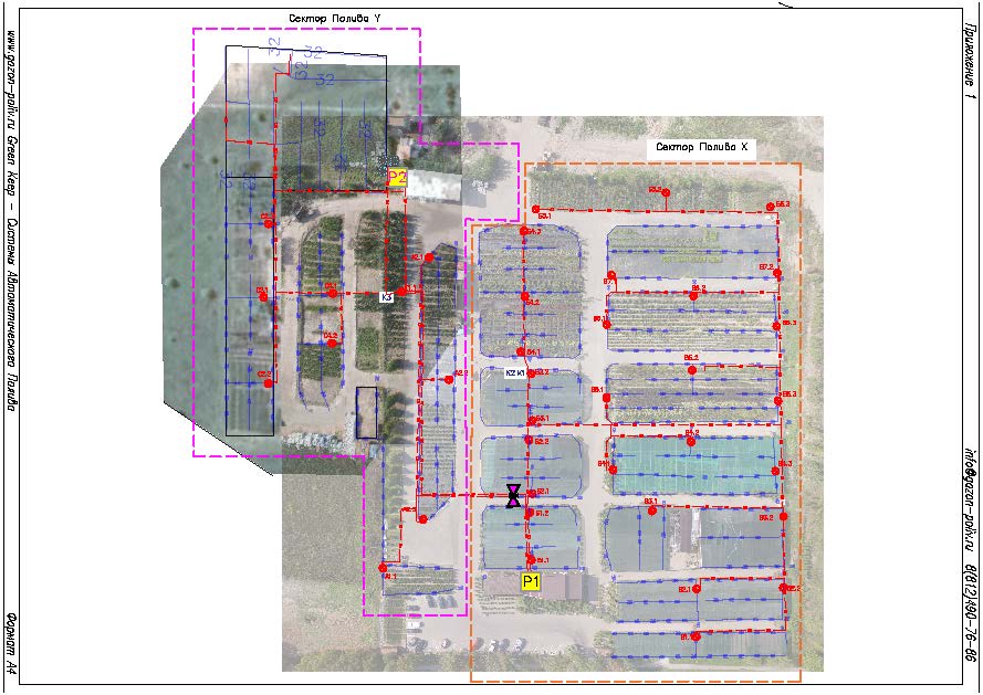 Заказчик поставил задачу на поэтапную реконструкцию существующей системы полива. Территория около 4 Га.